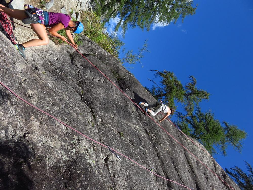 Večina smeri v dolini je odlično opremljenih (najdejo pa se tudi nenavrtane); in mene so dobesedno očarale črne plate. Postala sem fenica Jeana-Michela Cambona, avtorja več vodničkov s tega področja in tvorca neštetih navrtanih smeri. Za osebno poznanstvo sem bila malce prepozna , saj se je marca letos smrtno ponesrečil nekje v bližini. Žalostna je tudi legenda o gospe Carle, ki je utonila v razpenjenem potoku zaradi maščevanja prevaranega moža. No, mi smo imeli usta ves čas razpotegnjena do ušes in kaj bi šele bilo, če ne bi šele na koncu prišli do najnovejših vodničkov z opisi še več za nas primernih smeri. Izzivov ne manjka. Morda ideja za katerega od prihodnjih Žaož jev.