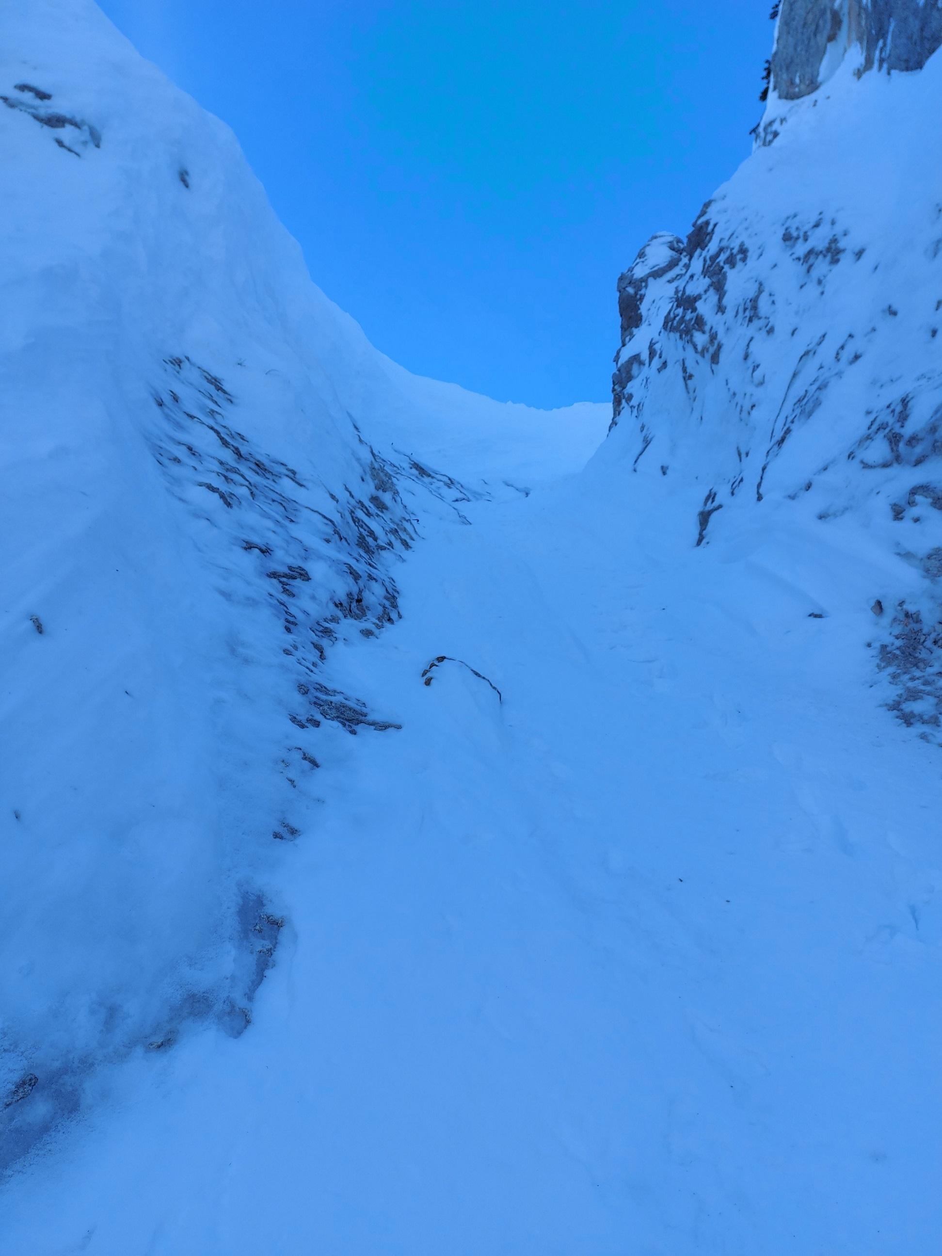 Sreda je bila namenjena počitku od plezanja. Zato pa si je delovna ekipa v četrtek in petek vzela dopust in uresničila zastavljeni plan. V četrtek zjutraj smo se odpravili na Jezersko pogledat, kako so narejeni slapovi. Pot nas je vodila proti Vikijevi svečki. Vendar pa smo jo že v dolini ucvrli proti Ledincu. Od daleč je bil videt bolj suhcan in svečkast. Prav tak se nam je pokazal tudi na prvem štantu. Od detajla je teklo in na vrhu svečke je bilo polno gob, ki so nam zapirale možnost prehoda na višji nivo. Žal tega še nismo sposobni preplezat in smo se z abzajlom vrnili pod slap. Da si malo popestrimo dan smo se odločili, da se po grapi desno od slapu povzpnemo proti koči na Ledinah. V začetku odlične razmere, proti izhodu iz grape pa se je začelo delo. Vedno več nepredelanega snega, večja naklonina, pa vendar nam uspe priti na greben. Snega čez kolena. 100m višje pa se vdiralo že do riti. Bili smo že na višini koče, zato nismo obupali. Naredimo prečko do koče, izpod nadstreška naredimo par fotk in se odpravimo proti Žrelu. V njem odlične razmere in odpikamo navzdol. Teranova v zadnjem času neplezana (koliko časa še??), razmere v spodnjem delu niso videt slabe.