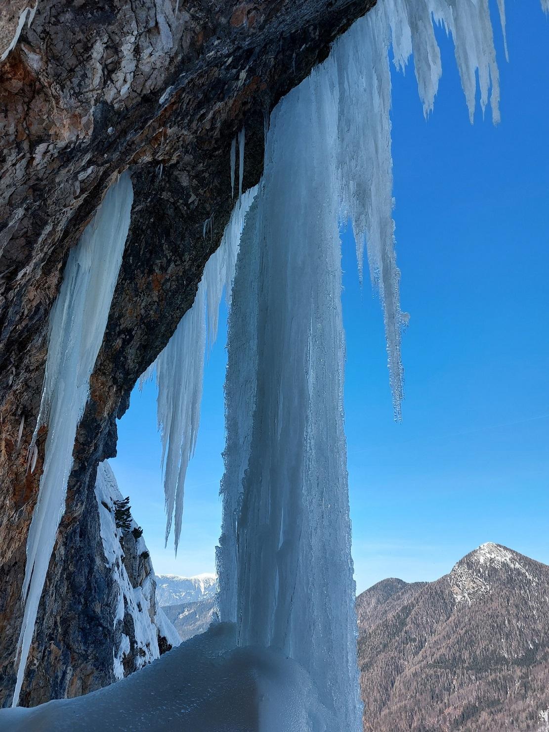 Napoved prihoda polarnega vremena, nas je spet spravila v pogon. V plezališču smo Toni, Miha, Matej in jaz osebno na debeli četrtek namestili še dodatne jeklene vrvi in jih skupaj povezali v upanju, da se nam čim hitreje naredi led na njih. Dan kasneje je pritisnil mraz. Rezultati so se hitro pokazali. V nedeljo smo lahko že plezali in to po delu, kjer se nam prej ni naredilo niti malo ledu. V skupini smo objavili povabilo za plezanje in na pustni torek se je v plezališču zbralo 14 osebkov željnih plezanja po ledu. Preživeli smo lep večer, poln navdušenja. Za delovno ekipo pa večer, ki ti da novega zagona. Žal so mrzla obdobja precej kratka, zato bo potrebno vložiti še toliko več znanja, da se nam bo čim hitreje naredil led. Izziv za drugo leto.