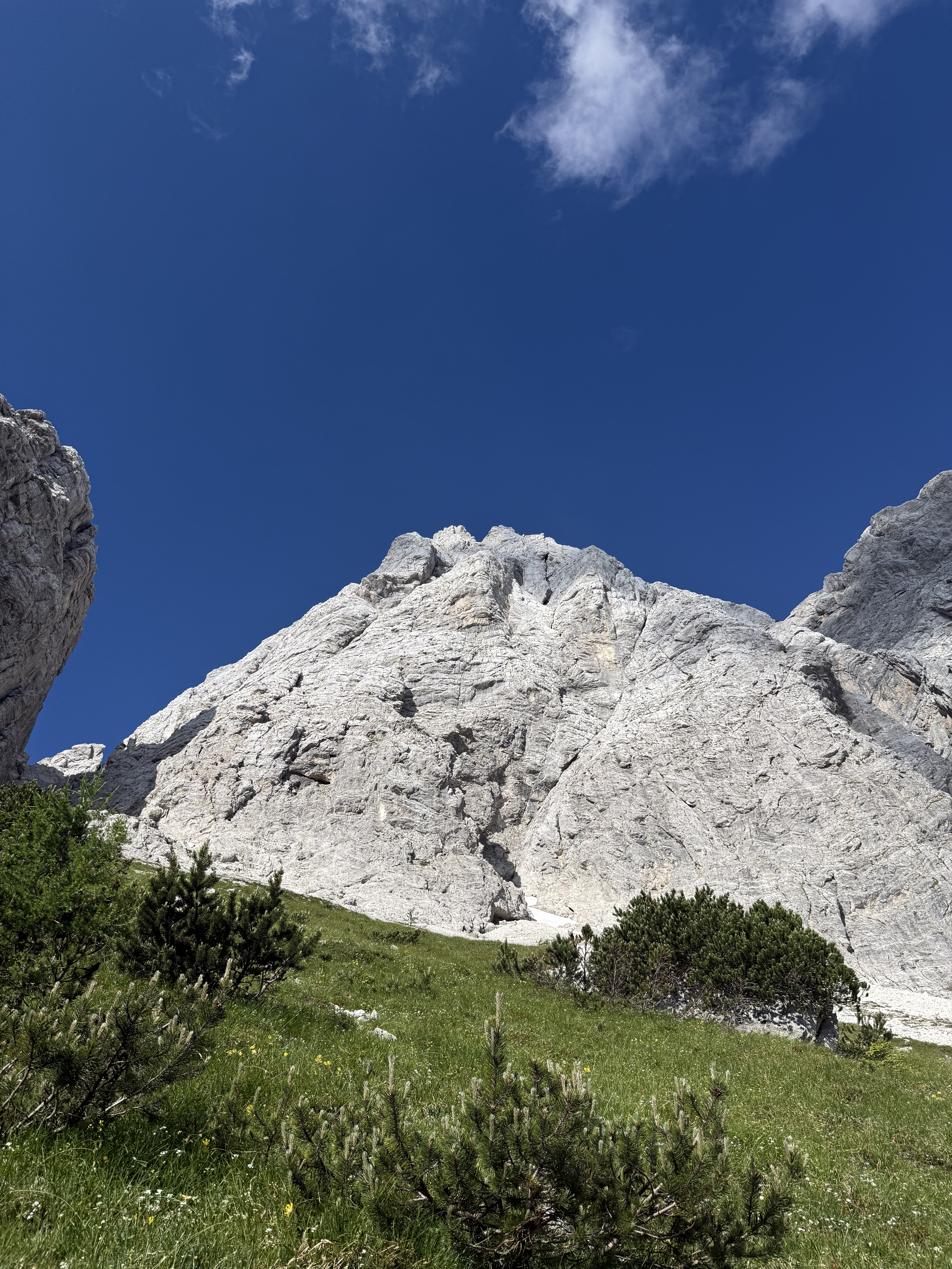 Po krajšem dopustu v Dolimitih z drugačnim namenom (s sabo sva imela Lex) se nama je že obema luštalo po mrzlih hribih in topli skali. Zato sva dopust prejšnji vikend skrajšala in si na zadnji dan splanirala turo v domačih koncih.