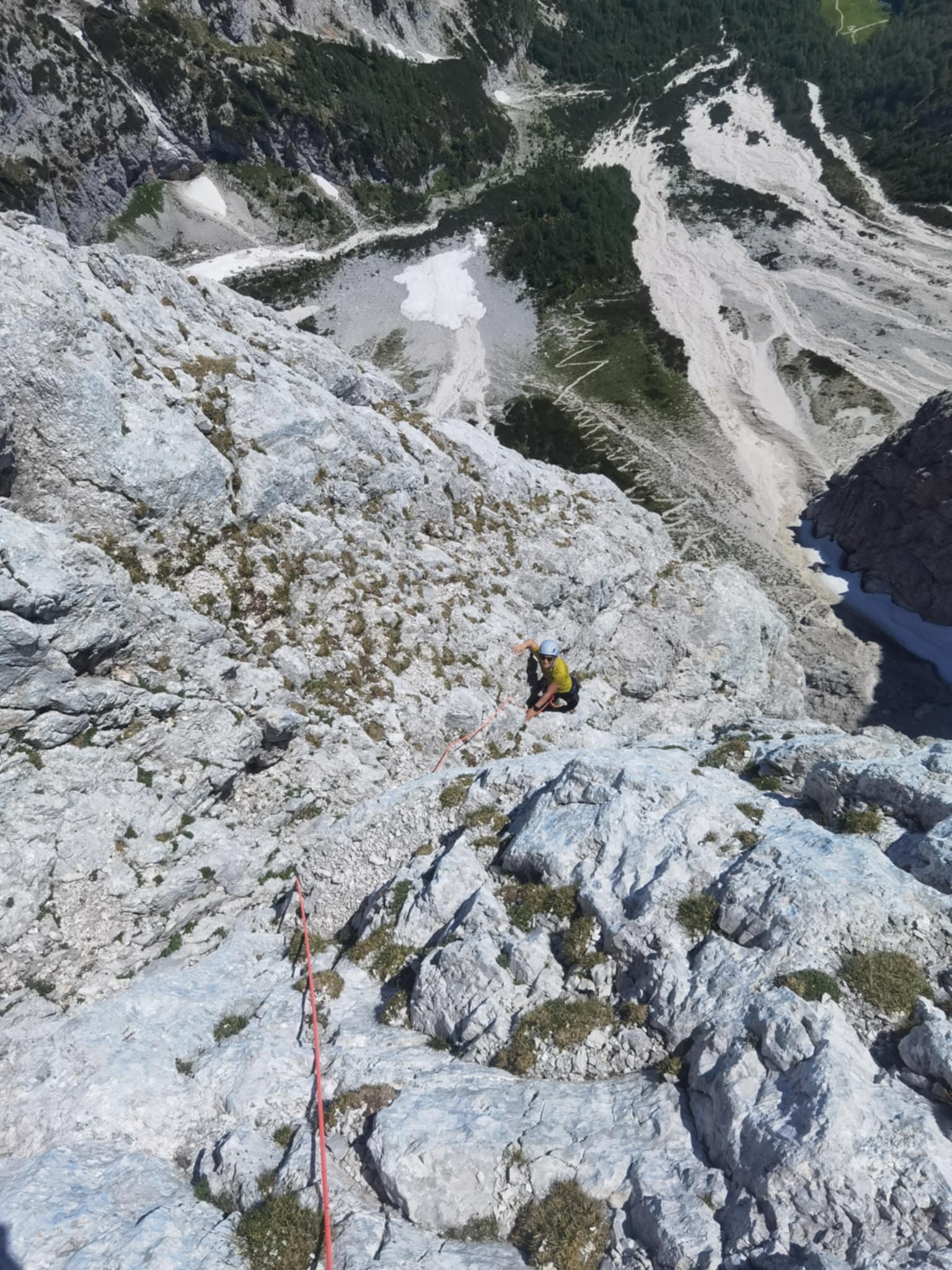 Smer Direktna v mali Rinki (IV, 350m) sva plezala Liza in Andrej Jež