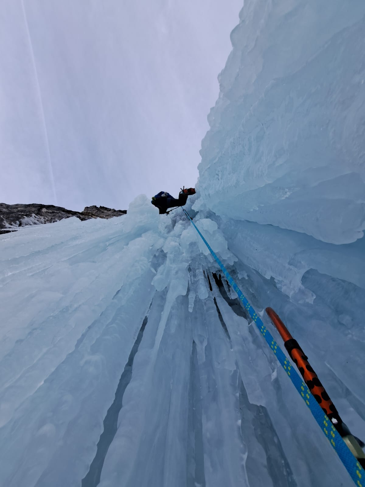 Že pred novim letom se je začelo nakazovat, da bi se januarja lahko plezalo v ledu. To se je tudi zgodilo. Tako smo se v začetku januarja, na Metkovo pobudo, zapeljali v Avstrijo. Točneje v Mallnitz, v dolino pod Ankogel. Tu smo po pol ure pešačenja po dolini, prispeli do slapu Bavaria Blue. Tri naveze smo se praktično naenkrat pognale v ta slabih 400m dolg slap. Začetno navdušenje je malo pokvarila kvaliteta ledu. Trd in napet, talarji in poke so se delale ob vsakem udarcu cepina. Kljub previdnosti, je Miha domov odnesel prebito ustnico. Vseeno smo bili veseli lednega začetka. Na poti domov že delamo plane za naprej.