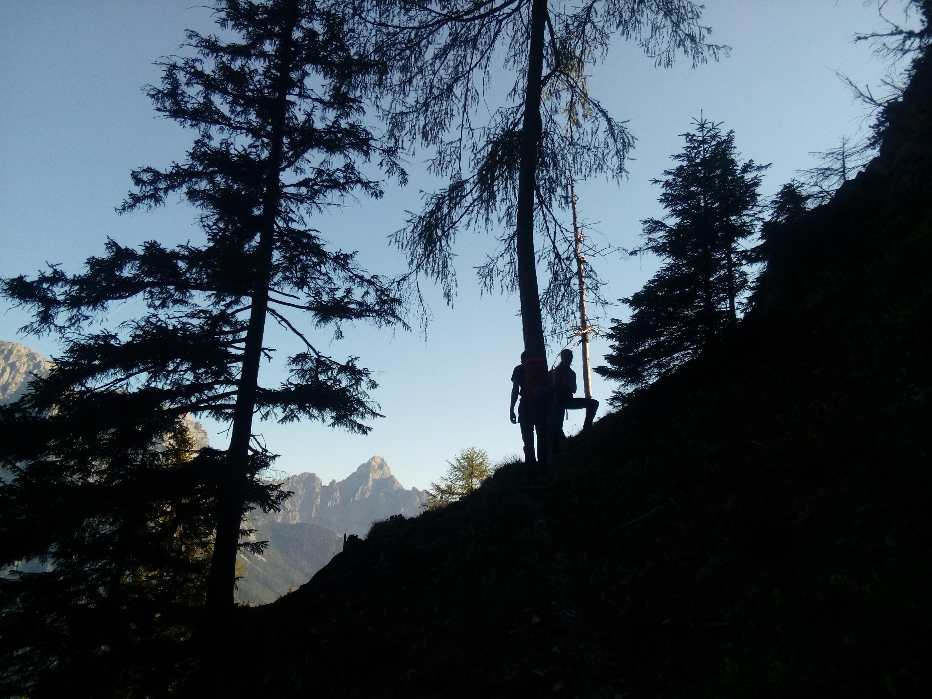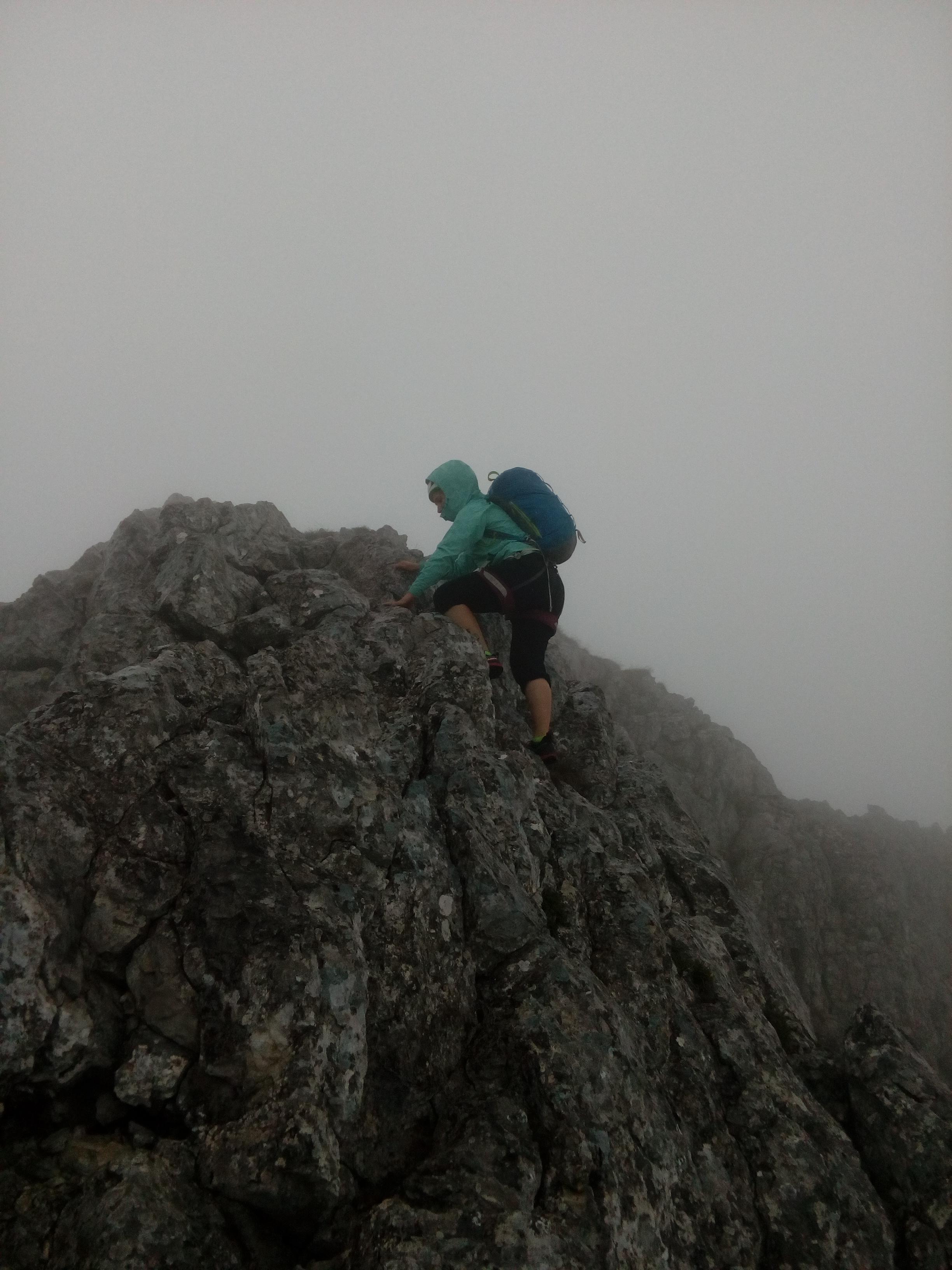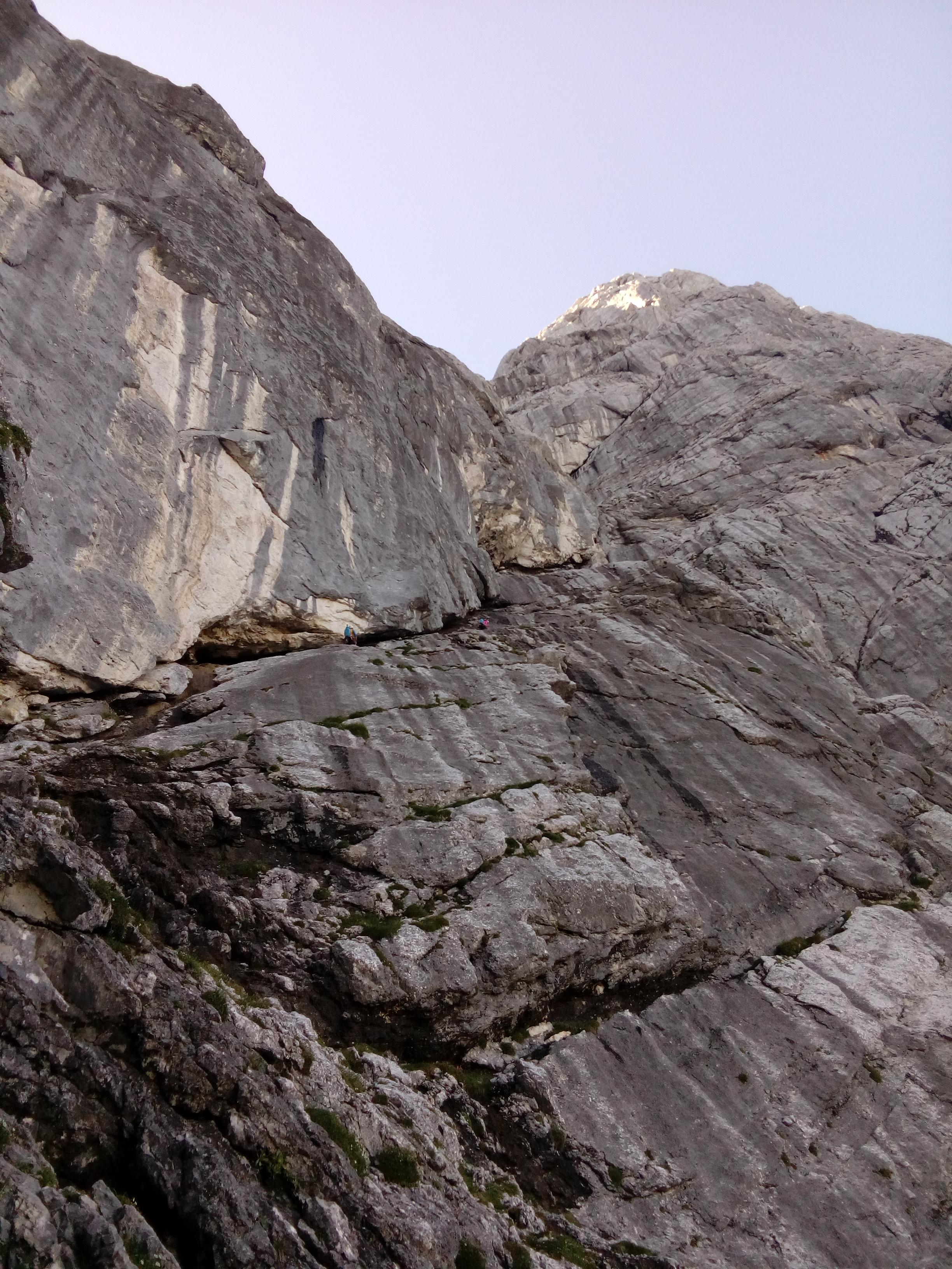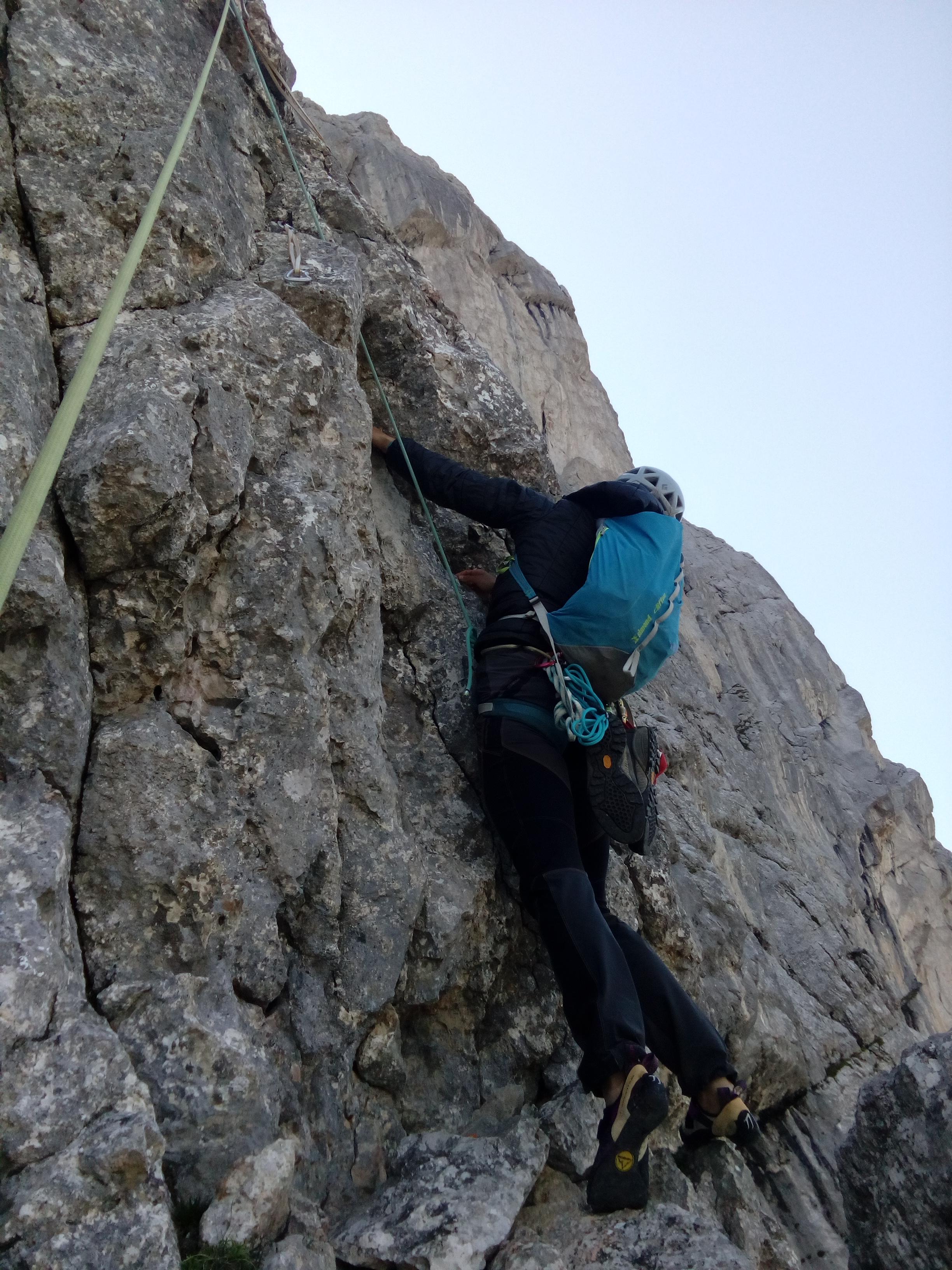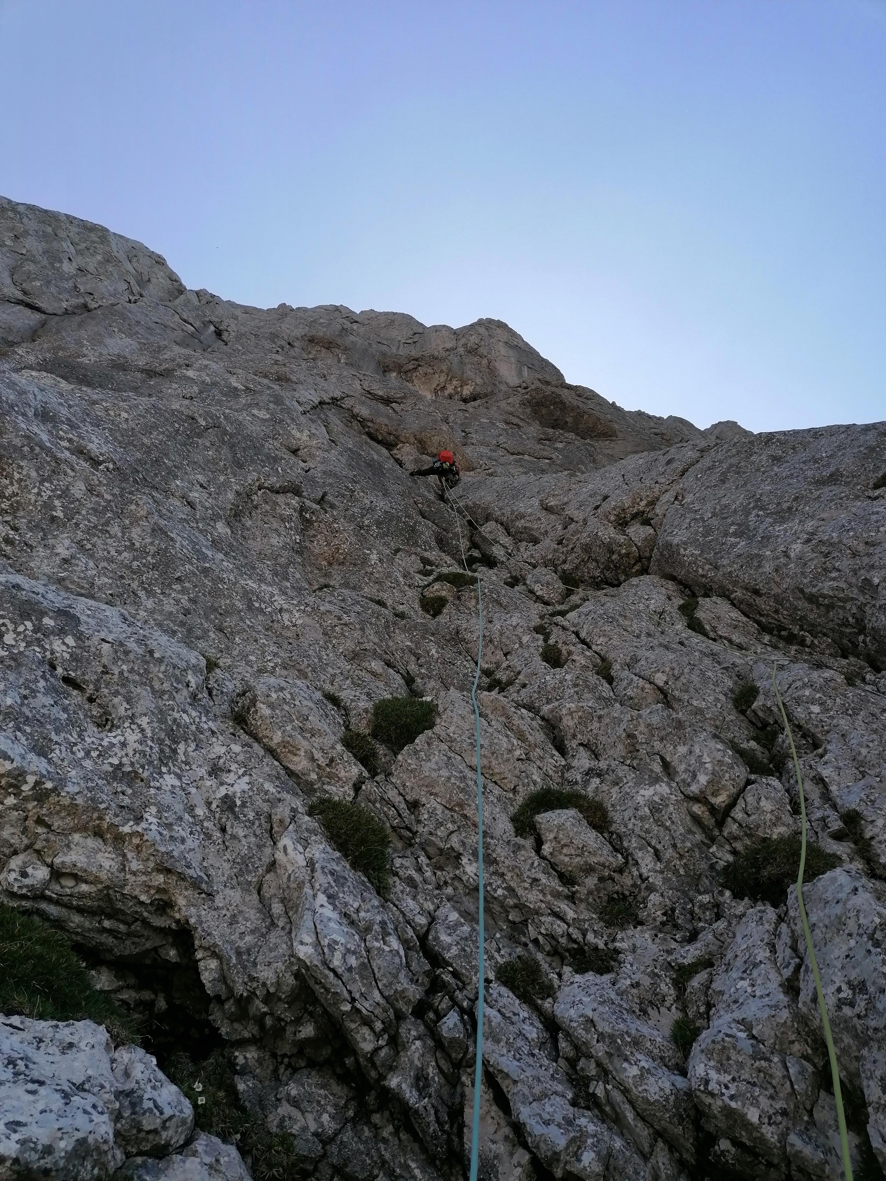 Prvi dan smo že precej zgodaj štartali iz Ljubljane, kjer smo morali najprej 2x zložiti vso prtljago in se šele nato odpeljali proti našemu cilju. Turobnemu vremenu navkljub smo se podali v južno steno gore Kalbling, do katere nas je čakal kratek enourni dostop. Naslednje pol ure smo porabili za poplezavanje (II-III) do začetka smeri Waidhofnerwerg (V+, 200m). Kaja se je zapodila v prvi raztežaj, ki naju je presenetil s svojo težavnostjo. Tudi skala se nama sprva ni zdela pretirano kvalitetnejša od slovenske. Takoj se je v nama prebudilo prav posebno spoštovanje do stene in naju postavilo na realna tla glede najinih plezalskih načrtov za prihajajoči teden. Smer je bila sicer precej dobro opremljena, le na nekaterih delih, kjer si človek ne bi želel pasti, ni bilo možno niti zabiti klina niti nastaviti kakšnega drugega varovanja. Plezanje je bilo večinoma precej zračno in izpostavljeno, gneče v steni pa ta dan na srečo ni bilo. Na grebenu sva pospravili opremo in se v suhem vremenu najprej po grebenu povzpeli na vrh, nato pa po prijazni planinski poti sestopili do avtomobila. Med potjo sva molče zrli v okoliške hribe, ki so nama dajali občutek domačnosti s svojimi zelenimi gozdovi in sivimi stenami.