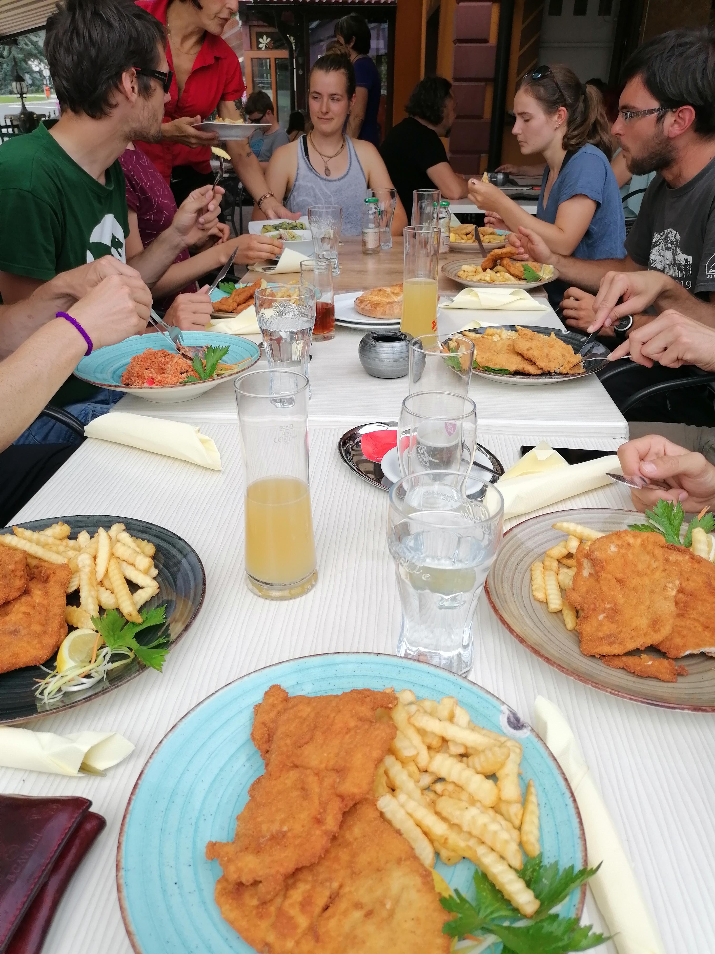 V nedeljo smo se polni lepih vtisov in prijetno izmučeni spakirali in odpravili proti domu. Verjamem da je bil marsikdo v kempu našega odhoda vesel, saj smo bili precej glasna druščina. Zjutraj so sicer še padale ideje o nedeljskem plezanju v Kotečniku, realen izid teh blazno optimističnih načrtov pa so bili polni želodci v gostilni Štajerski hram in za nekatere še dodatno polni trebuhi trojanskih krofov.