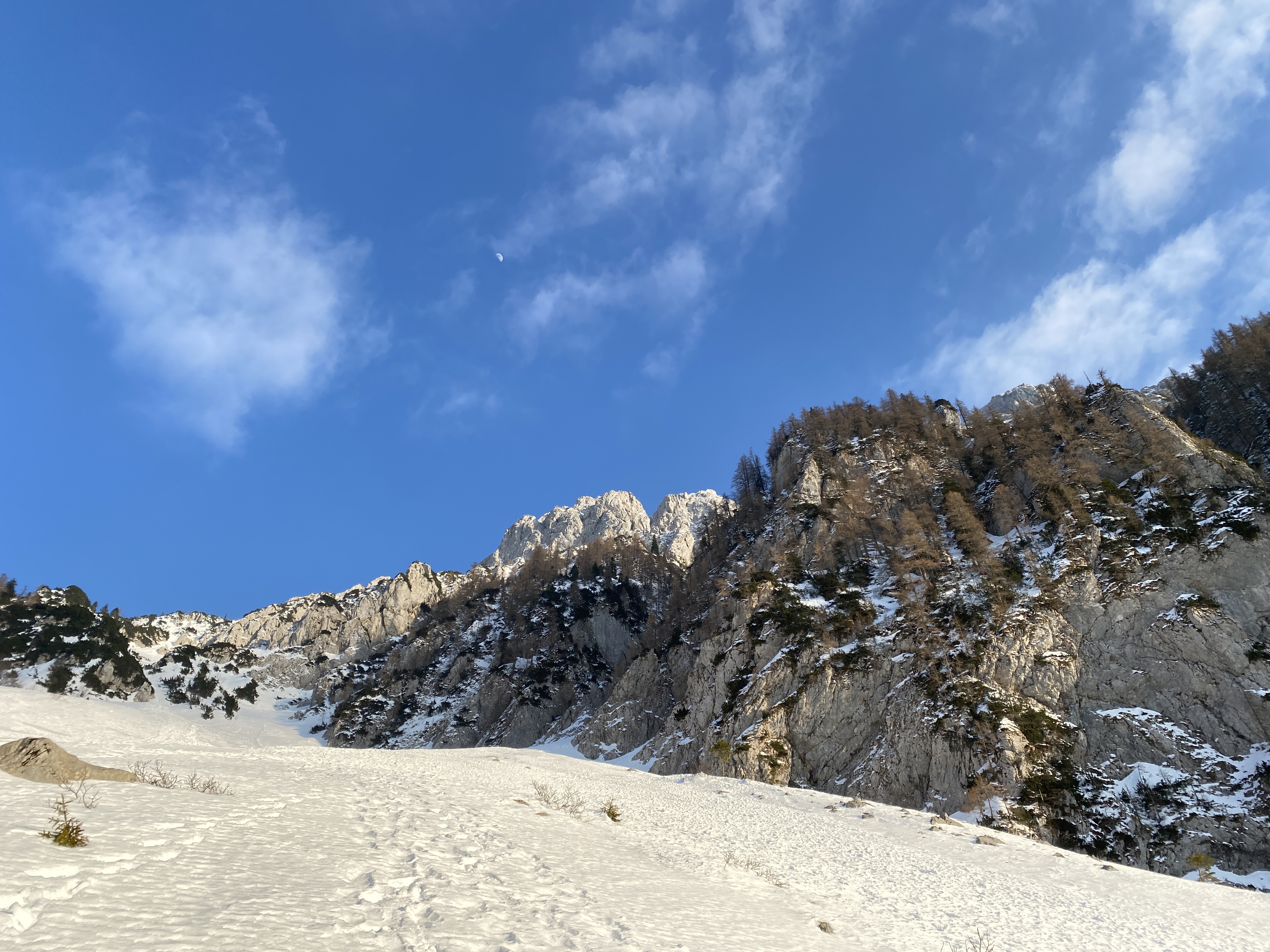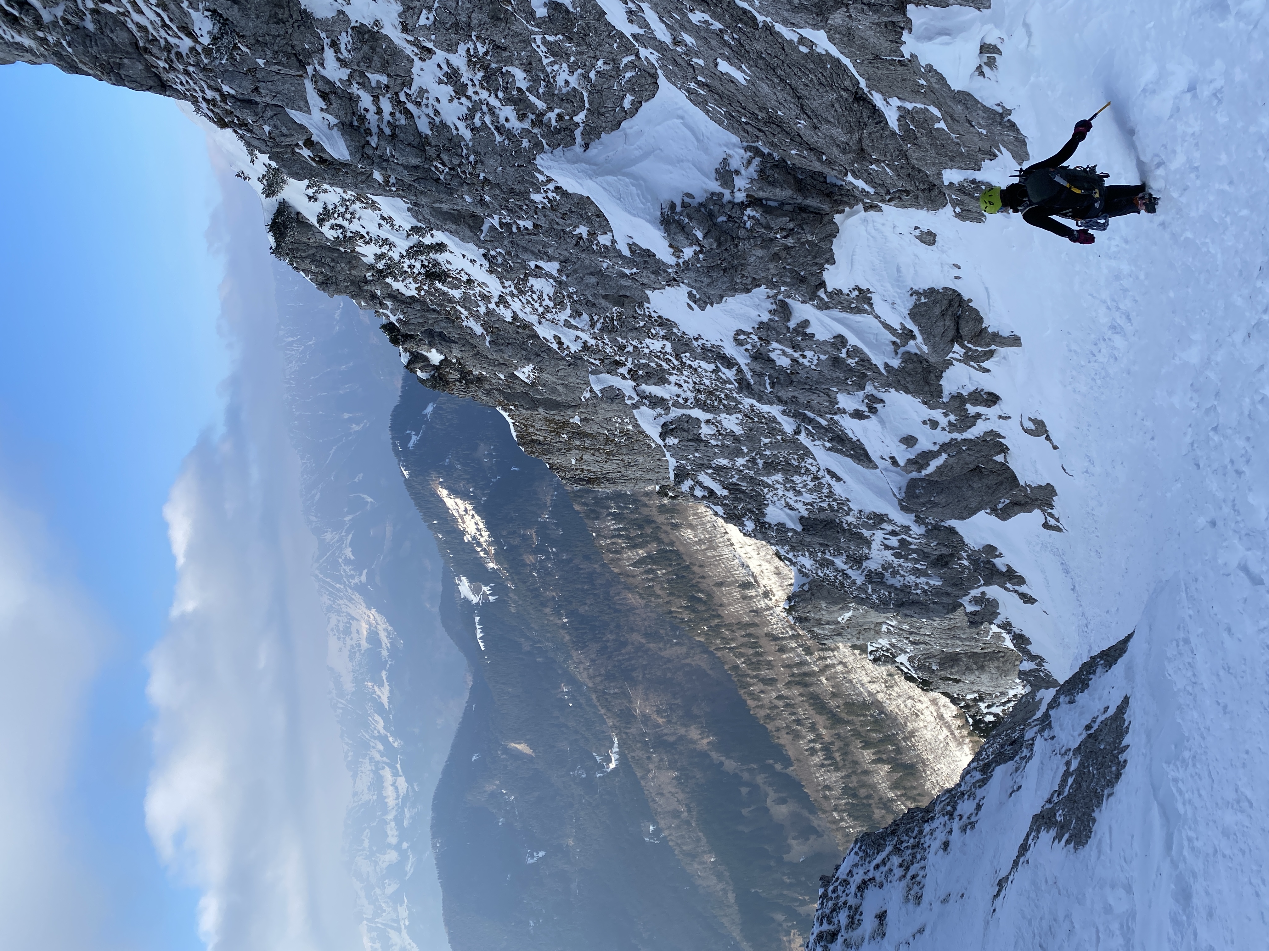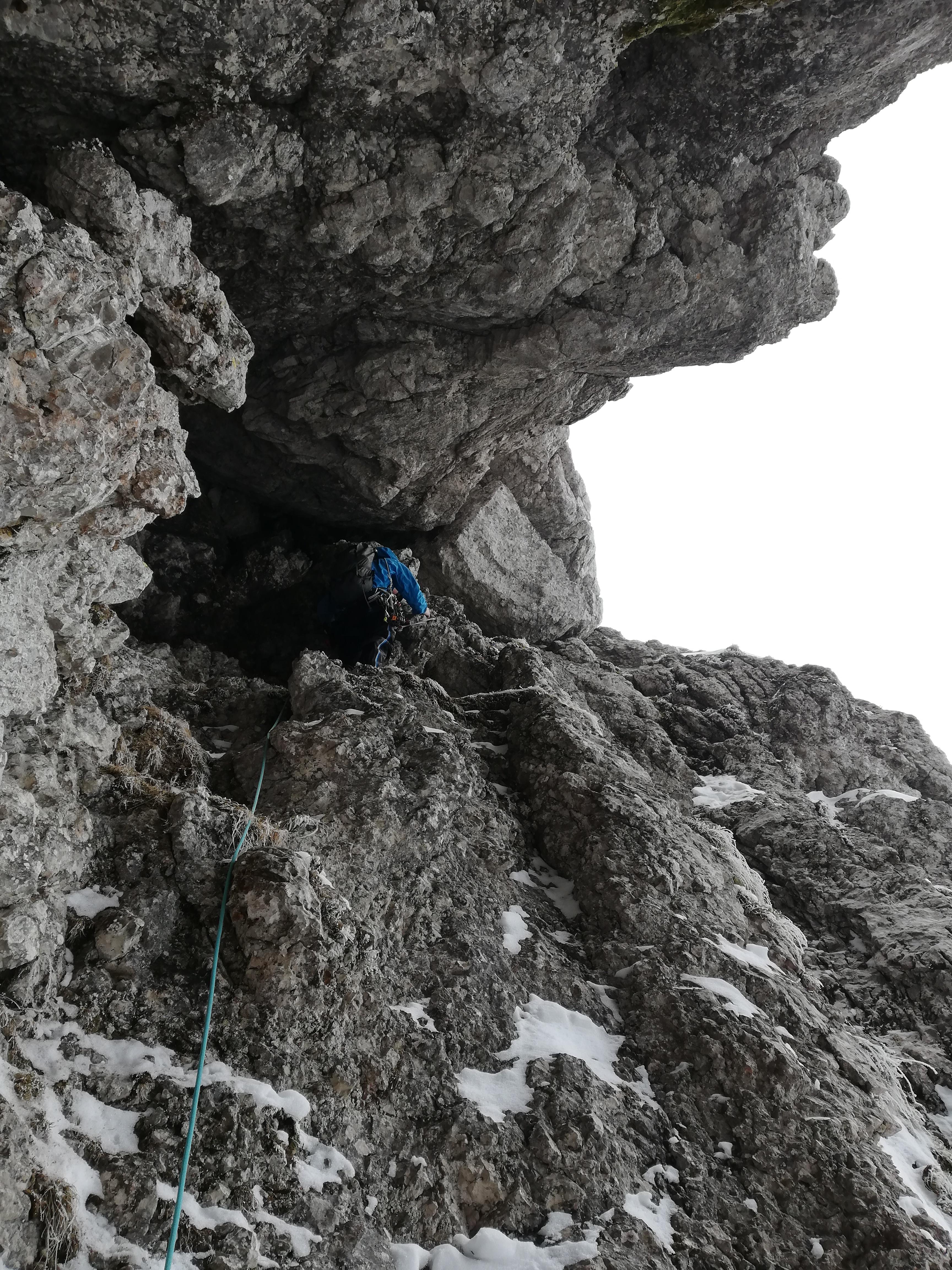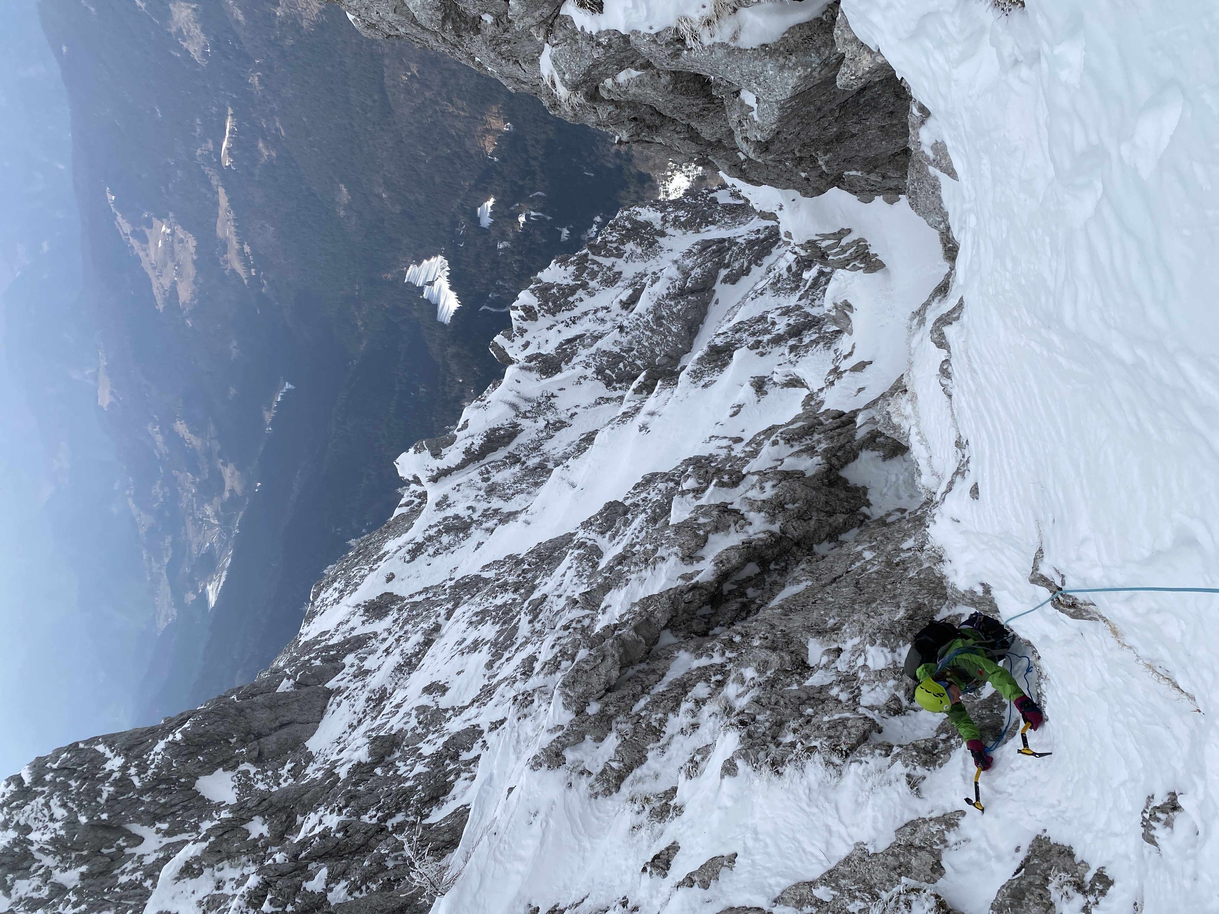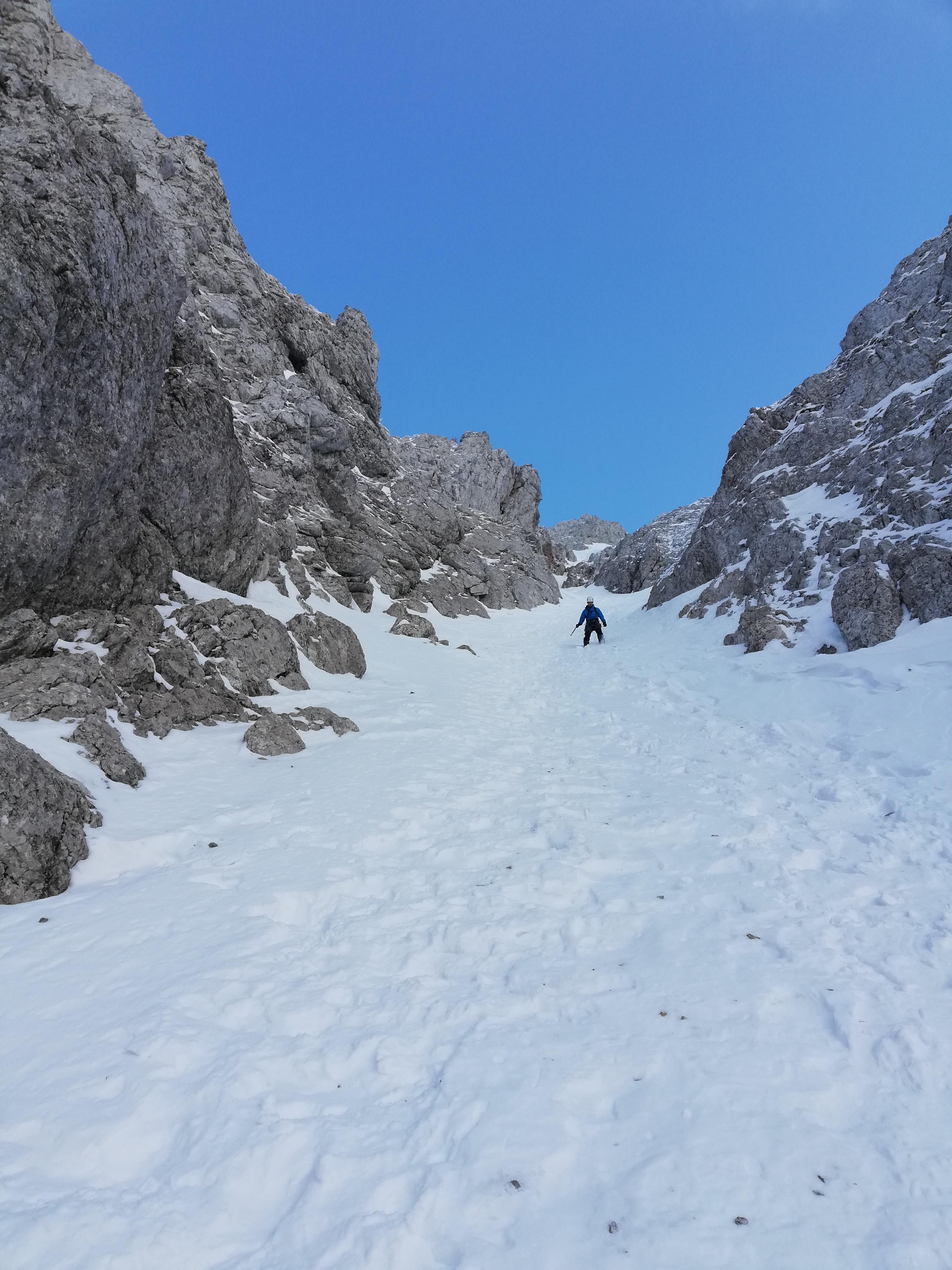 Kratek opis: Z Dinotom sva se v petek vzpela na Storžič preko Kramarjeve grape. V celotni smeri so trije skalni skoki, ki so skoraj popolnoma kopni. So pa zato dobro opremljeni s klini. Sicer je grapa lepo zalita s snegom, ki pa je vseh sort. Gaženje ni preveč naporno, še posebej če hodiš kot drugi ;) V smeri sva pustila 3 kline. Sestopila sva skozi Peto žrelo, kjer je snega še več kot dovolj. Celoten vzpon nama je vzel cca 7 ur, sestop pa slabi dve.