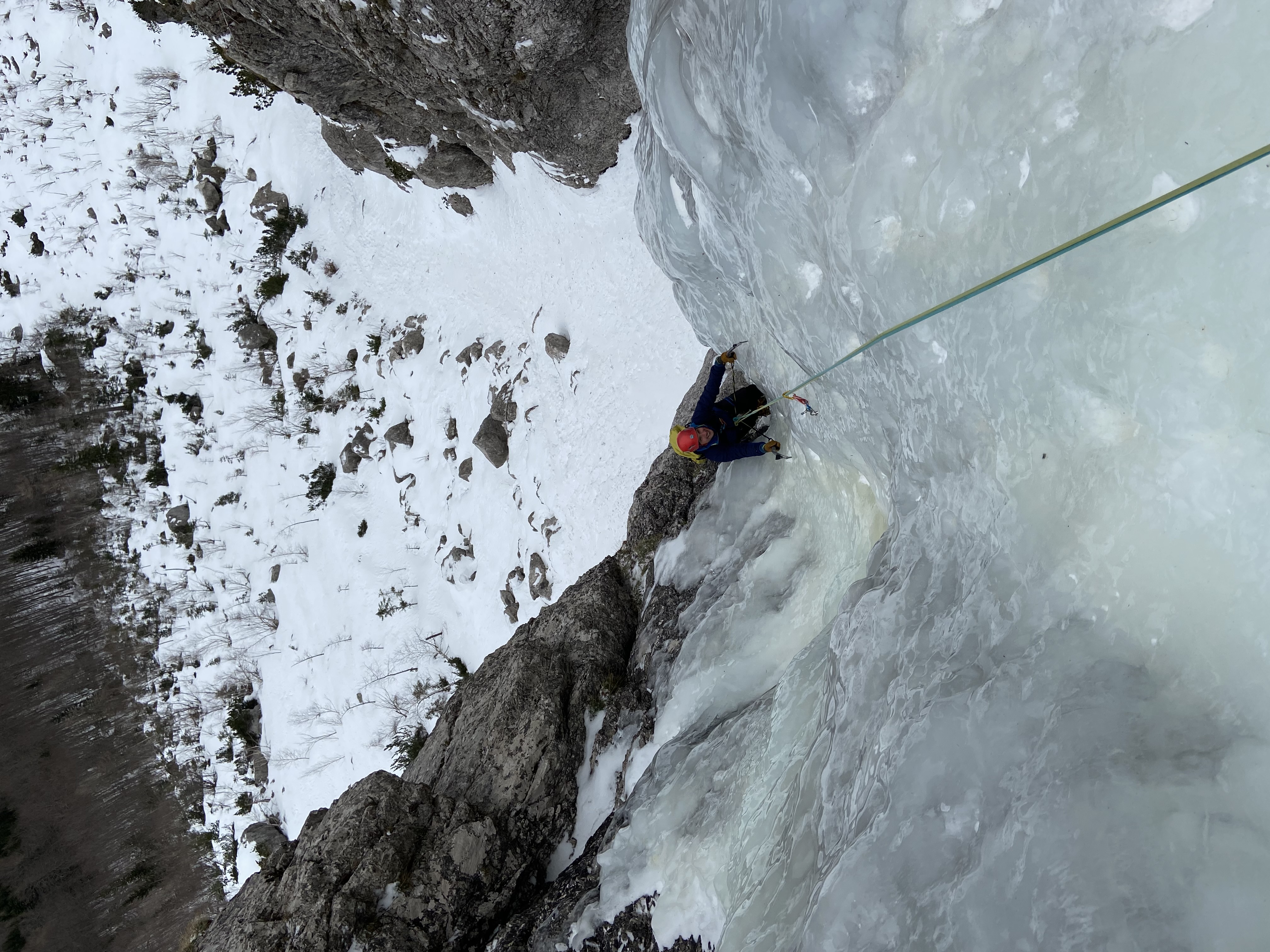 Z Dolijem sva sezono začela 22.1. v Teranovi, bila sva druga naveza tistega dne za nama pa se je razvrstilo vsaj še pet navez. Razmere v smeri so bile dobre, prvi strmi raztežaji so bili odeti v led in so ponudili lepo plezanje. Zadnja prečka je bila dobro uhojena zato ni predstavljala nobene težave, sledil je sestop čez Žrelo.
