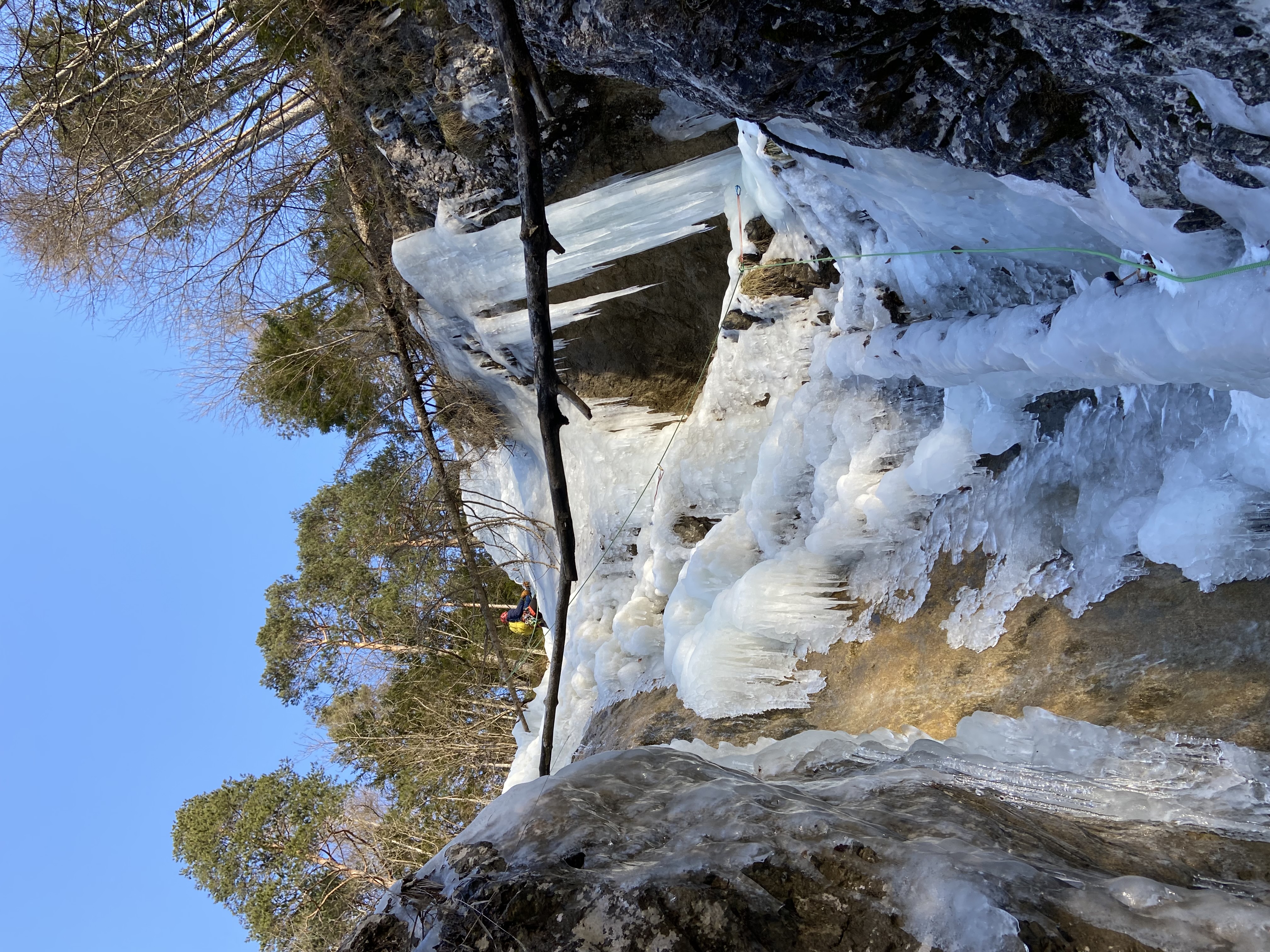 Čez par dni se z Vidom(Ao Litija) peljeva proti Logarski, da splezava kakšen slap. Plezala sva Slap na Klemenči jami in zraven njega še Kiks. Oba slapova sta bila dobro narejena, predvsem Kiks je postregel z lepim strmim plezanjem(škoda, da ga je samo za dva raztežaja). Ker sva imela še veliko časa ob povratku v dolino sva splezala še Palenk, ki pa je bil že precej bogi. Ker pa sva bila še vedno 'lačna' ledu sva se ustavila ob cesti in splezala še Avtocesto. Produktiven dan :D