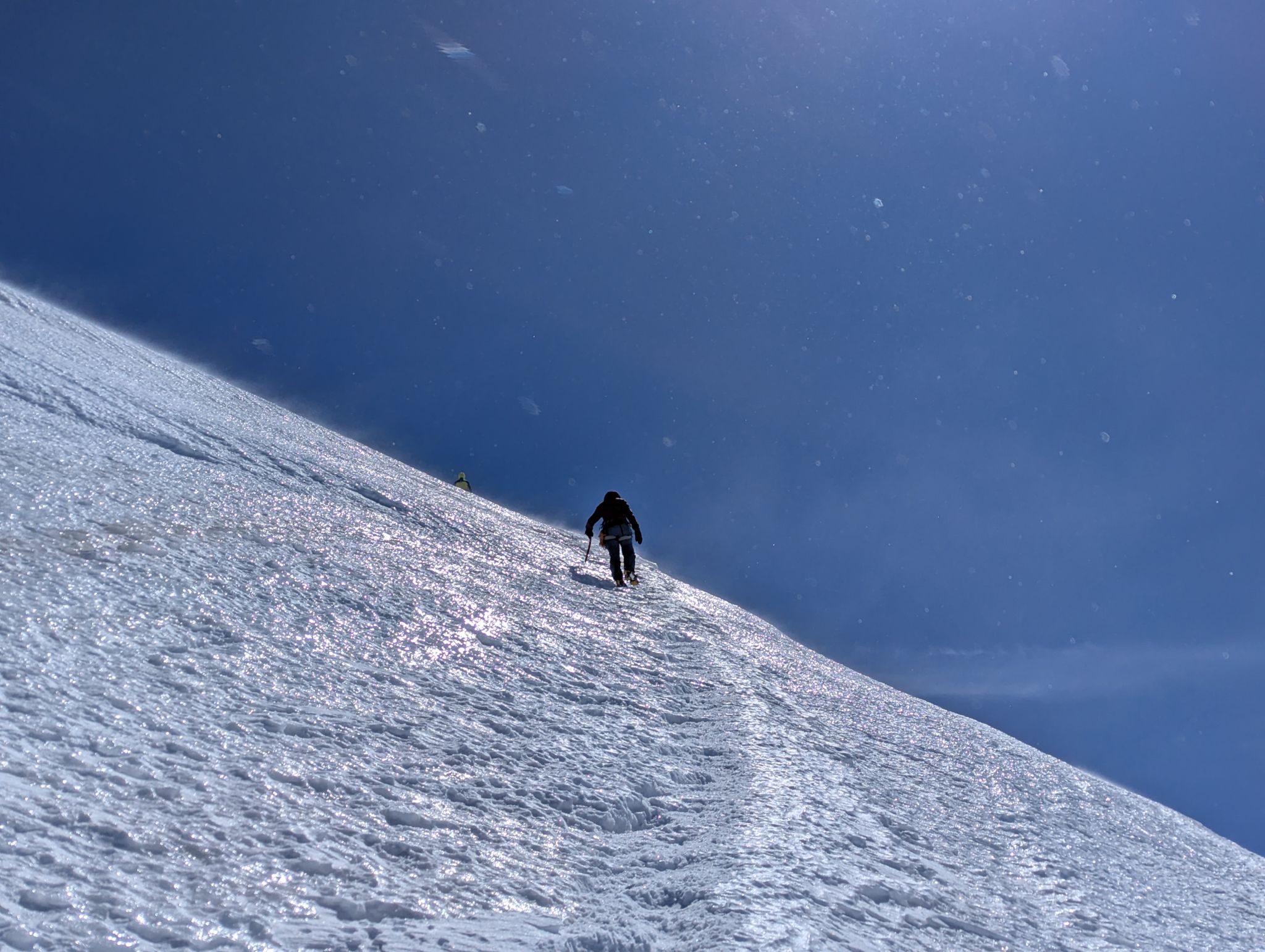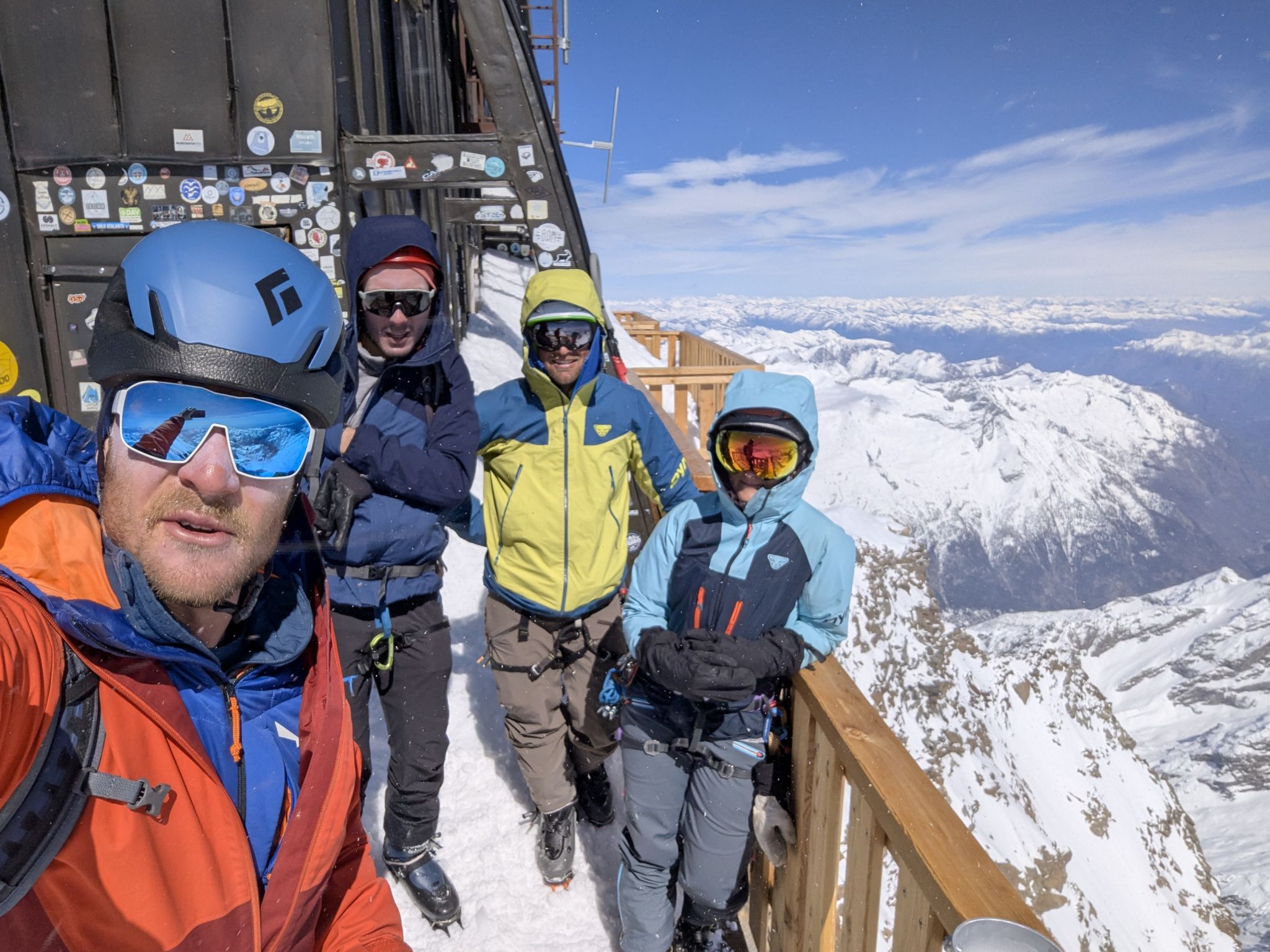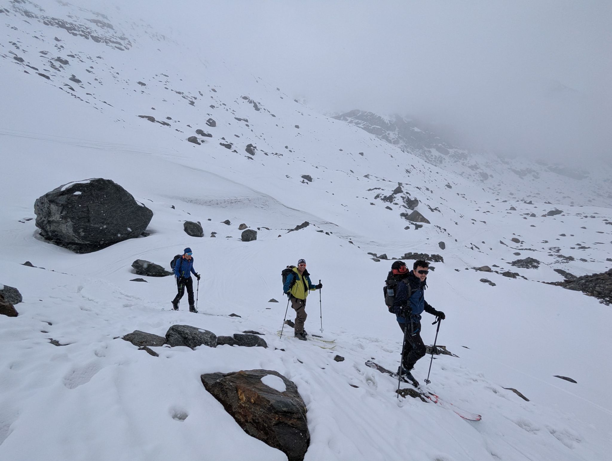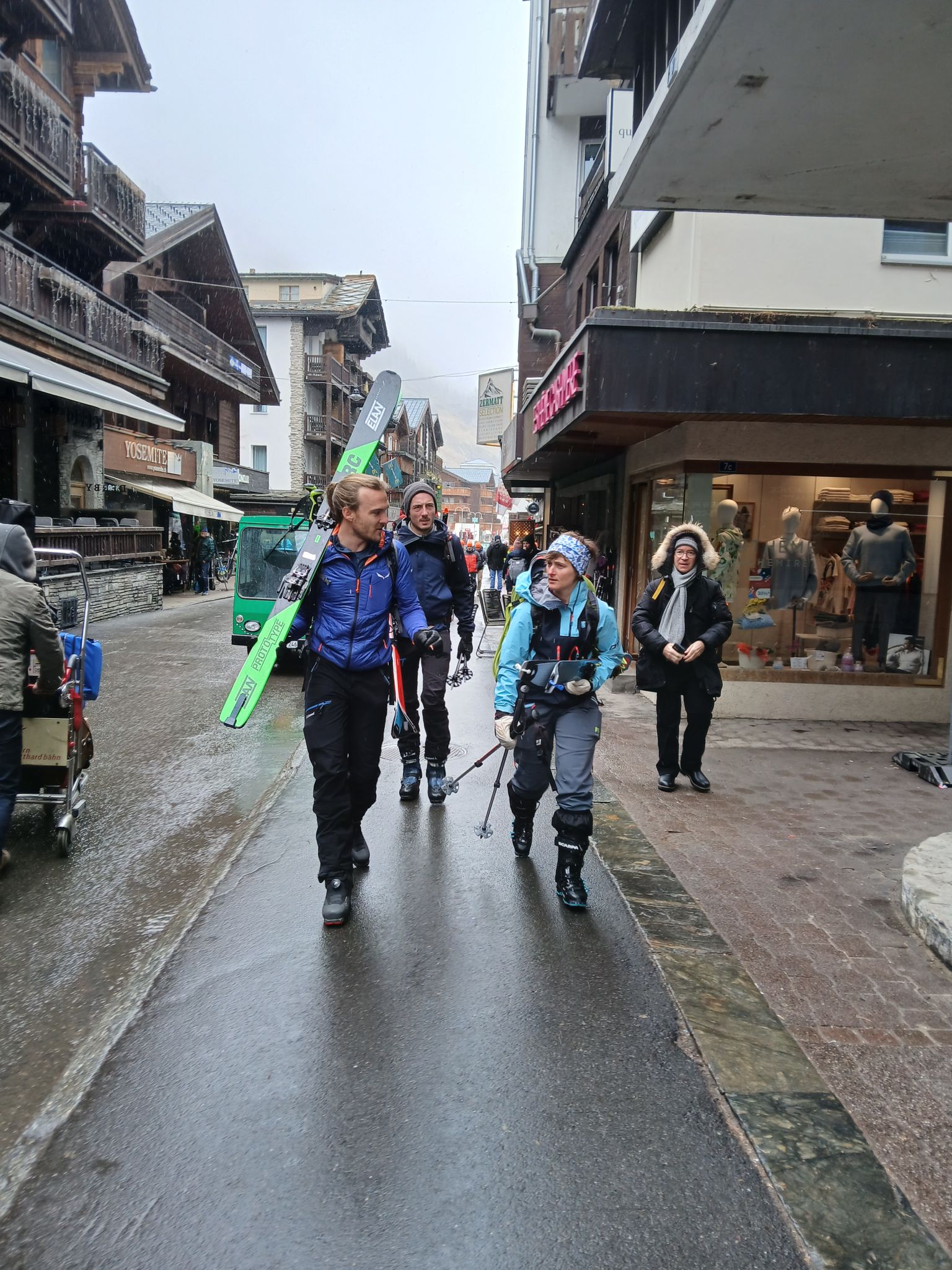 Z Majo sva zadnji teden v marcu izvedla turno smuko v Švici. Prvi teden sva preživela v regiji Engadin v kantonu Graubuenden. Vso opremo sva nesla iz vasice Susch (1.559) po zaprti cesti pod prelazom Fluela do strnjene snežne odeje, nato sva se vzpela čez dolino Grialetsch do koče Grialetsch (2.540). Naslednji dan sva odsmučala predvrh Piz Grialetsch (3.027) in nato še čez škrbino Rothorafurgga na Raduener Rothora (3.021). Naslednji dan sva se povzpela na Piz Sarsura (3.176) ter odsmučala čez ledenik Vadret da Sarsura v dolino. Noč sva preživela v dolini in zjutraj v lepem vremenu pohitela na prelaz Julier (2.237), od kjer sva se vzpela čez dolino Val d’Agnel na škrbino d’Agnel (2.982) ter se po ledeniku s severne strani povzpela na Piz Surgonda (3.195). Spustila sva se do koče Jenatsch (2.652). Zjutraj sva se povzpela čez dolino Traunter Ovas na škrbino Margun (2.945) ter z južne strani na Corn Suvretta (3.071), nato pa čez planoto Margun in Val d'Agnel odsmučala nazaj na prelaz. Ker sva se v štirih dneh povzpela na pet tritisočakov in opravila kar nekaj tisoč višinskih metrov, sva si vzela dan počitka. V soboto sva se odpeljala v kanton Wallis ter z vlakom v Zermatt, kjer sta se nama pridružila Peter in David. Skupaj smo se od postaje Furi povzpeli čez sotesko Gorner, prečili ledenik Gorner in spodnji del Mejnega ledenika do koče Monte Rosa (2.882). Naslednji dan smo se v smučarski ledeniški navezi štirih povzpeli čez zgornji del Mejnega ledenika na Signalkuppe (Punta Gnifetti)(4.554) do razgledne koče Regina Margheritta, ki pa je v tem času zaprta. Odsmučali smo čez ledenik po smeri pristopa. Zadnji dan smo odsmučali še čez oba spodnja ledenika ter neposredno v Zermatt, kjer smo čez mesto v pancerjih odkolovratili do železniške postaje. Kdo pravi, da alpinizem ni turizem? Skratka, dopust je uspel.